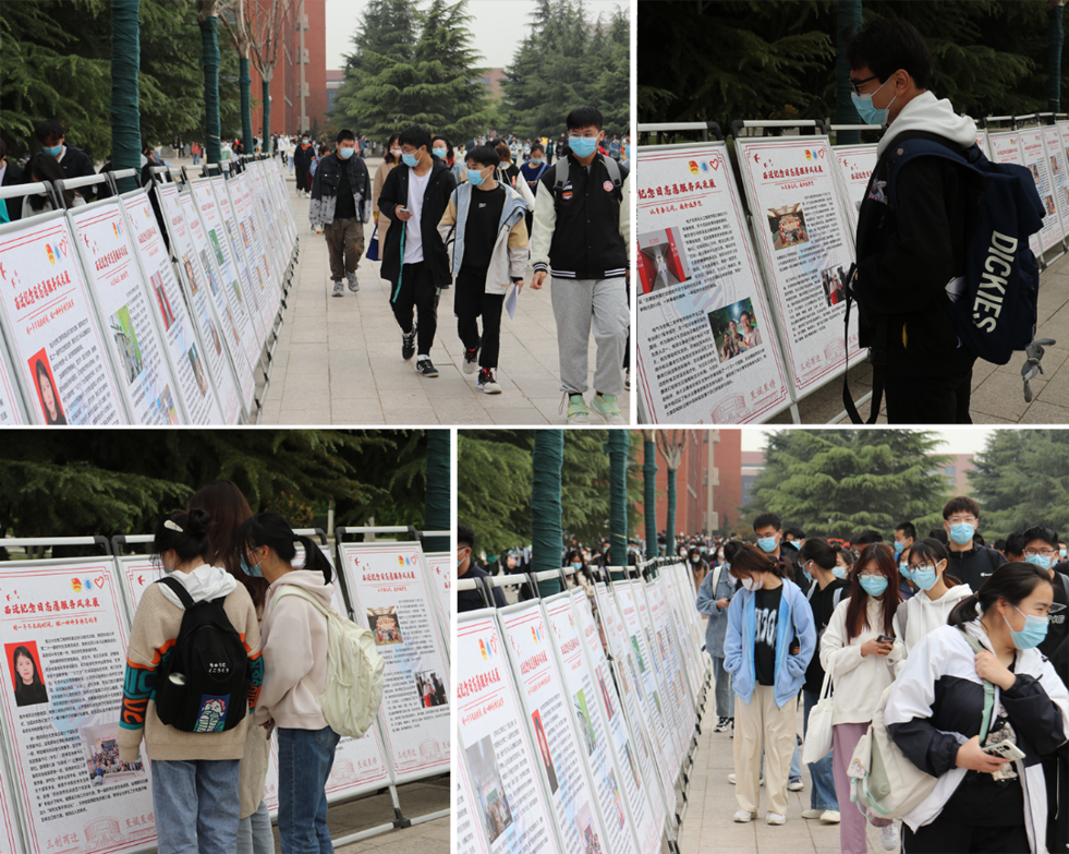 本次展览分为四个板块,共计43张展板。其中“最美志愿服务组织与项目”和“最美志愿者”板块通过介绍陕西科技大学优秀志愿服务组织、项目以及志愿者的事迹,进一步展示了近年来陕西科技大学在志愿服务工作方面不断推进制度化和常态化的建设成果,培育陕西科技大学志愿服务文化;“历届研究生支教团典型事迹”板块,详细介绍了陕西科技大学研究生支教团在支教地开展的基础教学、送教下乡、暖冬助学等教育扶贫的感人事迹,是陕西科技大学“三创两迁”精神中扎根西部、服务社会的奉献精神在西部计划育人实践中的生动体现;“十四运会及残特奥会优秀志愿者”板块,讲述了陕西科技大学志愿者在十四运会和残特奥会期间一件件帮助他人、收获成长的动人故事,体现了陕西科技大学志愿者们始终以昂扬向上的精神姿态和热情细致的志愿服务,向来自全国各地的运动员和观众们展现科大青年的青春风采,充分展示了陕西科技大学开放式办学的靓丽名片;“抗击疫情科大志愿者先锋”板块,以陕西科技大学疫情防控期间始终坚持在一线的志愿者事迹为主要内容,展现了科大青年日夜坚守防疫阵地,共同铸就抗疫城墙,为师生们的生命健康安全逆行而上、保驾护航的责任与担当。