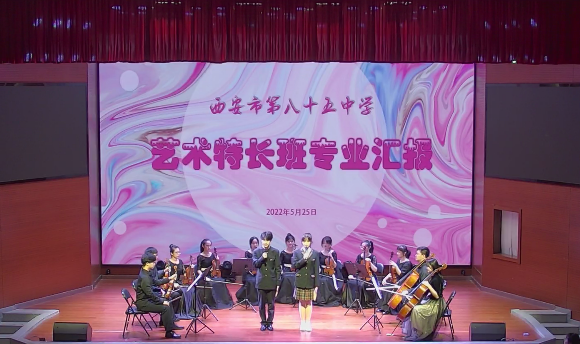 5月25日,我西安市第八十五中学艺体中心举办了2022年西安市第八十五中学艺术特长生专业汇报演出暨艺术特色班考核展演活动。校领导、特色班班主任、参演学生家长等受邀共同观看了孩子们的个人优秀作品展及集体作品训练成果,同学们展现出的艺术水准得到了全面肯定和高度赞赏,在多方的支持下本次汇报演出取得了圆满成功。