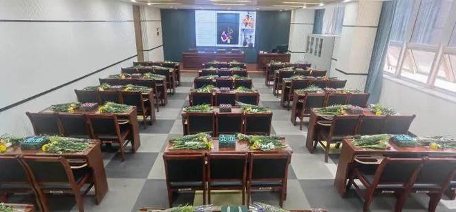 活动现场,桌上摆放着丰富的插花素材和工具,现场显得格外温馨而富有春天的气息。女教工齐聚一堂,共同学习插花这门古老而充满魅力的技艺。阎春喜校长特意在培训前来到会议现场,幽默风趣地表达了对各位女神老师的节日祝福。