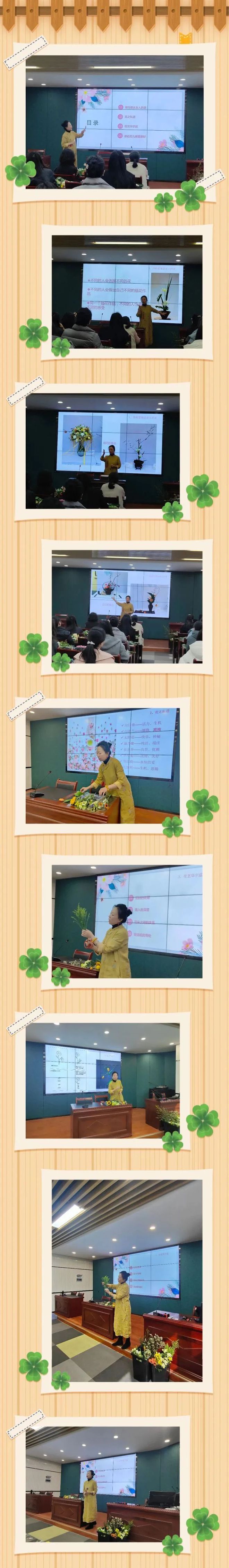 活动伊始,我们有幸邀请到了西安市高级花艺师汪肃老师。她用一幅幅插花作品进行现场互动,在欣赏中带领大家感受插花的艺术之美;她以深入浅出的方式,为大家讲解了插花的基本原则,插入的深度和花品的搭配技巧。