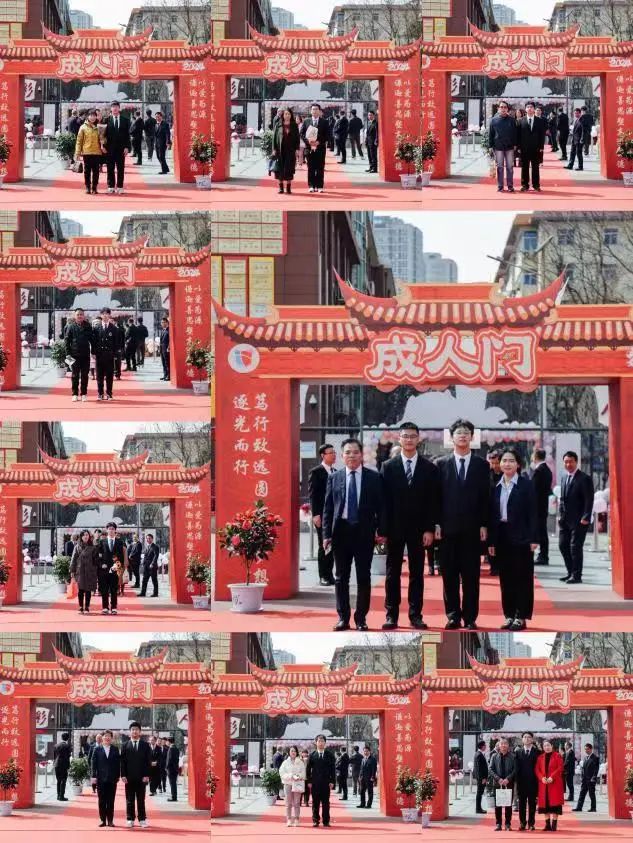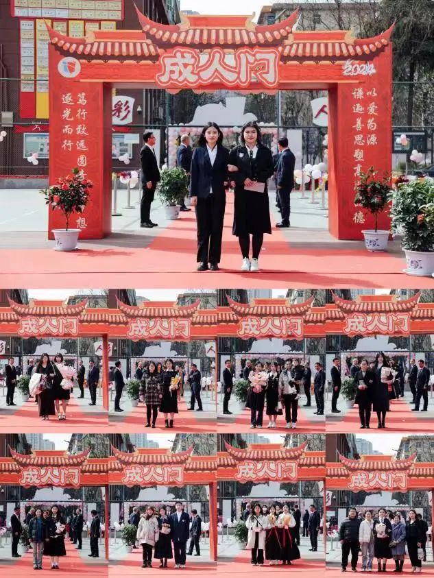 伴着悠扬舒缓的音乐和主持人铿锵有力的解说,2024届高三全体同学在家长的陪伴下一起走上红地毯,跨过成人门,一步一坚定,一色一流光,七彩的梦想,装点灿烂的希望,十八岁,翩然而至,走过了“成人门”,你们将放下懵懂稚嫩的“过去”,拥抱理想与责任共存的“未来”。