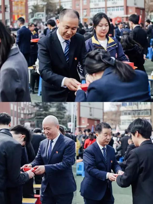 学校领导们亲自为每一位同学送上年级赠礼,愿2024届的同学们,在日月山川、星辰大海的人生旅途上,一路生花,拥抱美好的未来。