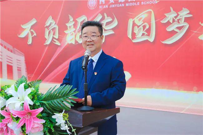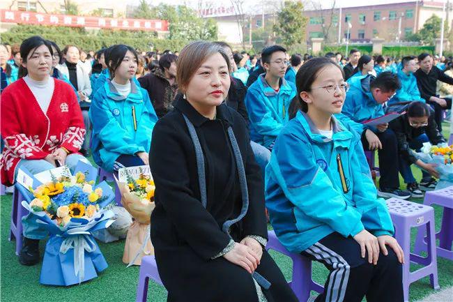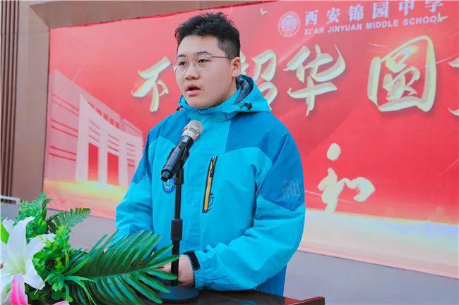西安锦园中学校长樊锁强代表学校向九年级全体同学致以美好的祝愿,向奋战在教学一线的九年级全体老师致以诚挚的谢意,向一直以来关心、支持学校工作的家长朋友们表示衷心地感谢。樊校长希望在接下来的一百天里同学们要珍惜每一刻光阴,科学备考,拼搏进取,让青春不悔的花朵在六月的锦园中学绚丽绽放!