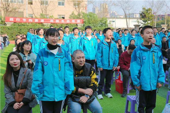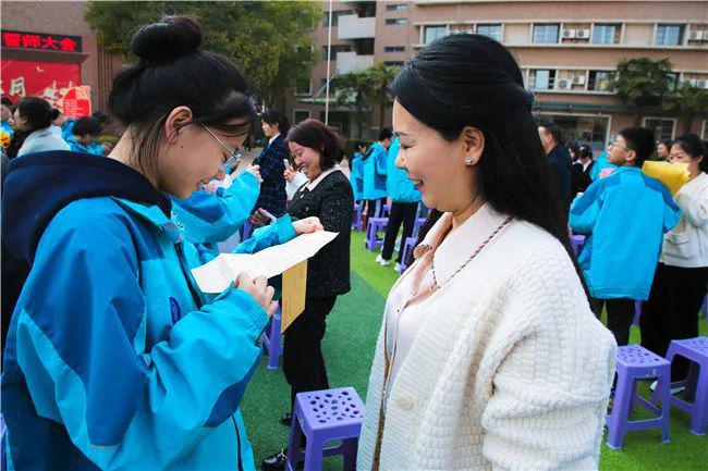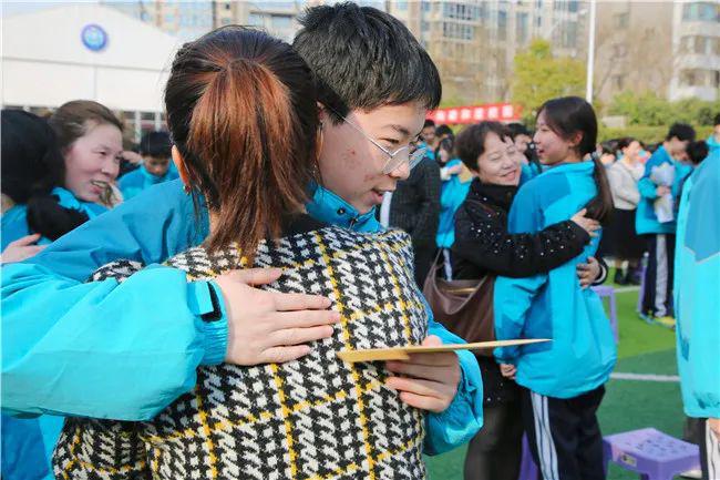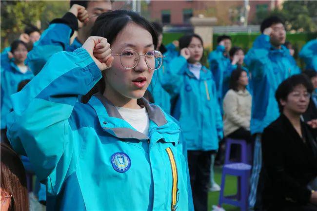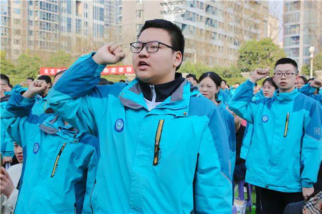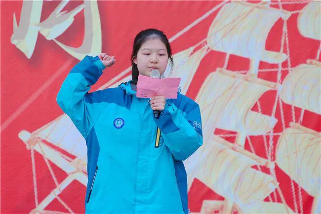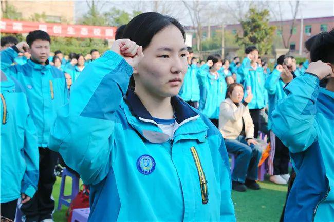 学生代表任杨凯越代表全体九年级学生向学校、老师、家长郑重承诺,在接下来的一百天里,我们将顽强拼搏,乐战不怠,全力以赴,在这场最重要的战役中铸就自己的辉煌,记录父母的笑靥,雕刻锦园的丰碑!
