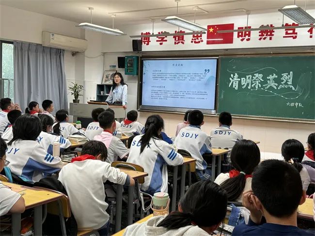 4月1日,各班以“清明祭英烈”为题组织开展主题班队会。缅怀红色历史,追忆峥嵘岁月,队会上,队员们知晓了一个个感人的红色故事。杨根思、狼牙山五壮士、烈火中的邱少云、少年抗日王二小……各中队辅导员带领队员们了解历史,重温那段激情燃烧的红色岁月,将对祖国的热爱、对英雄的敬仰、对未来的坚定信念深深印刻在每位队员心中。