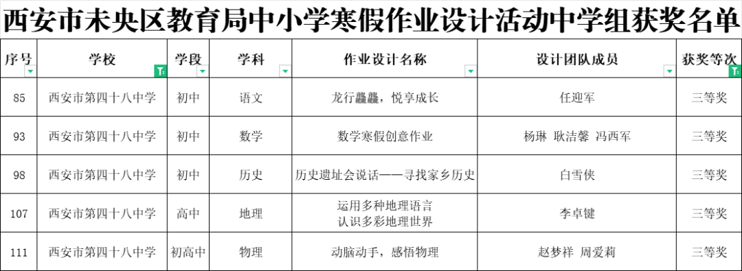 西安市第四十八中学高质量落实“双减”任务,探索作业改革新路径,认真做好学校寒假作业设计,发挥寒假作业育人功能, 在西安市未央区教育局中小学寒假作业设计活动中斩获佳绩!