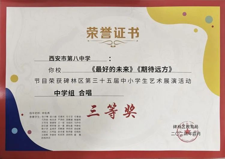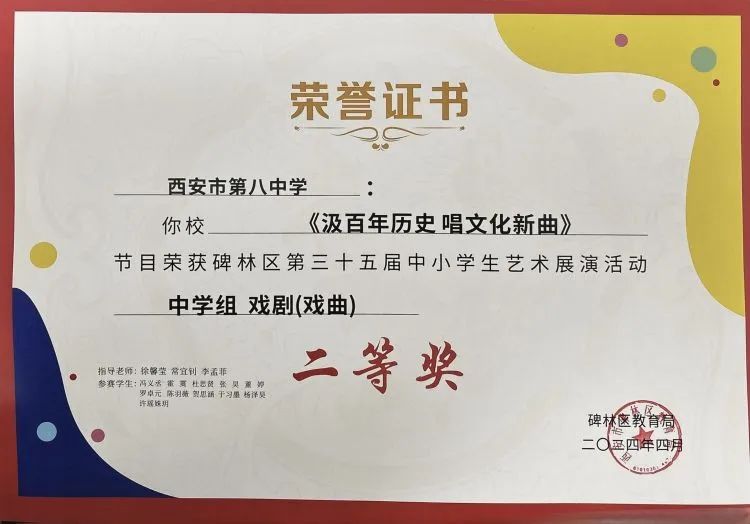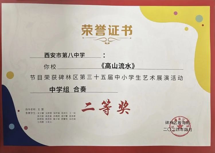 西安市第八中学在碑林区第35届中小学生艺术展演活动中获佳绩!