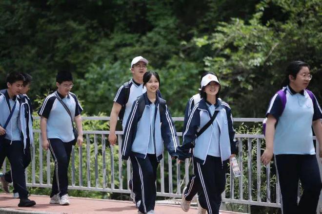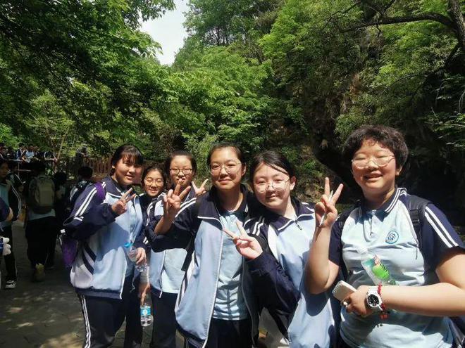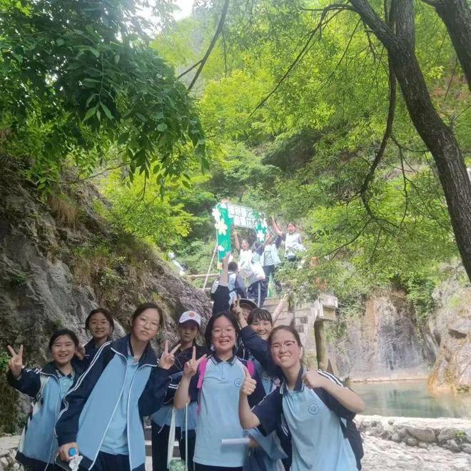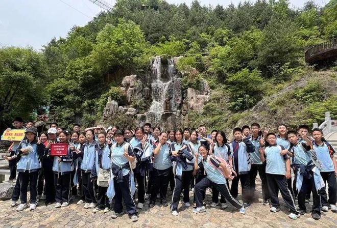 快乐学习后,同学们乘坐观光车到达山脚,开始爬山,这是体力与毅力的双重考验。映翠湖湖面碧波荡漾,与瀑布和玻璃吊桥相互映衬,仿佛一幅生动的画卷,此外,沿途的海石花、斗槽飞瀑、九龙泉等美景更是层出不穷。一路走走停停,说说笑笑,同学们踏足红岩寨,这里分前寨和后寨,前寨的海石芽景观奇特壮观,让人惊叹不已;后寨则是《关中匪事》的故事原型地,同学们在欣赏美景的同时,也能感受到浓厚的历史底蕴。