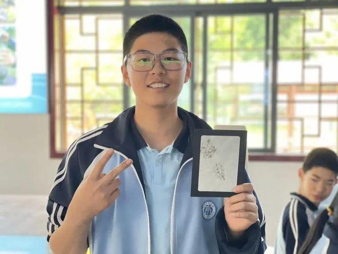 接着,同学们在教授的指导下体验了非遗拓印项目,以三叶虫化石为模板,制作标本卡,从化石里触摸远古的生命形态,找寻岩层的时间痕迹,感受生物地理的奥妙。