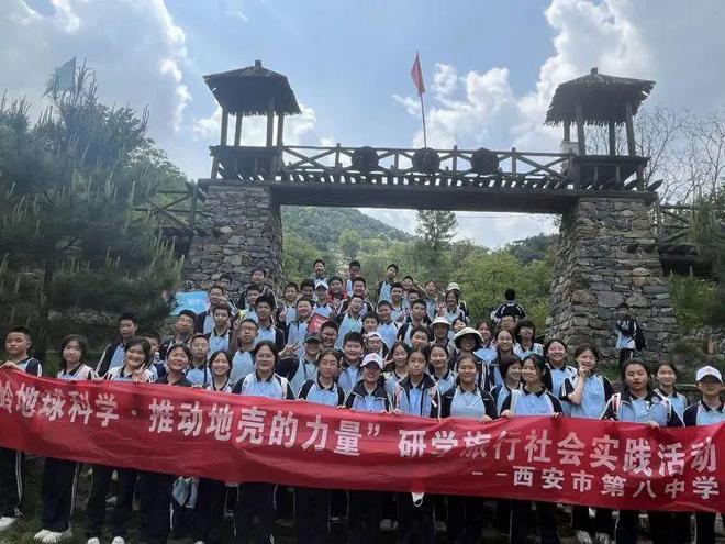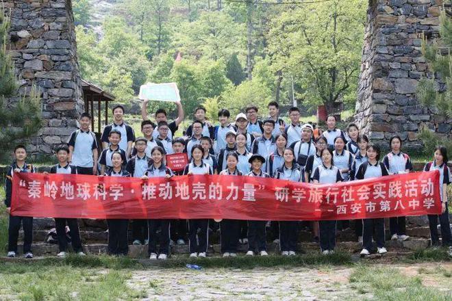 为践行西安市第八中学“适道·树人”的校本课程理念,体验西安市第八中学“问道·博取”的户外系列研学课程。西安市第八中学初2023级举行“秦岭地球科学,推动地壳的力量”研学活动。