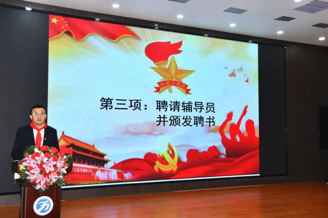 副校长王有军代表学校领导,向全体少先队员表示热烈祝贺,向辛勤的辅导员和工作者致以诚挚问候。他鼓励大家,作为新时代少先队员要铭记历史,传承红色基因。要求同学们在学校的每一天,都要遵规守纪、举止文明、严以律己,弘扬少先队奋发向上的精神,做五环中学优良校风的传承者、文明校园的建设者、励耘精神的践行者。最后,激励辅导员们,要一如既往地将爱心、耐心和热心奉献给孩子们,把智慧献给立德树人的教育事业,做少先队员的亲密朋友和指导者。牢记教育初心,对孩子们负责,对社会负责。