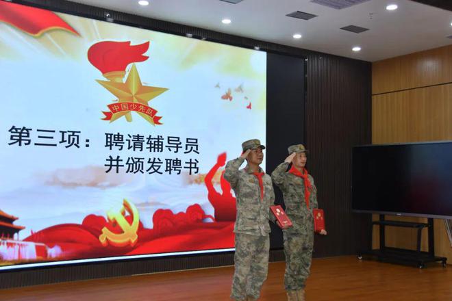 队员们注视着鲜艳的队旗,齐唱《中国少年先锋队队歌》,声音整齐嘹亮,激情澎湃,振奋人心。