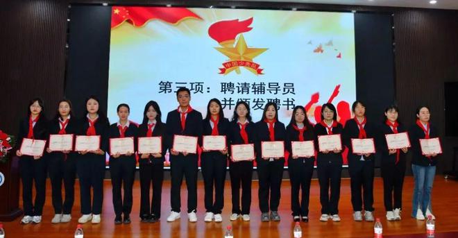 现场领导为初一年级各中队辅导员颁发聘书。