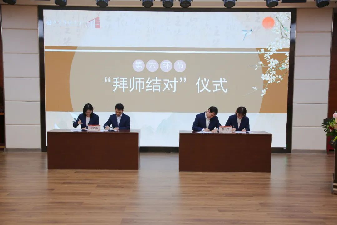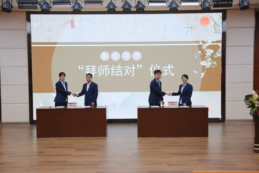 随后,教师结对双方共同签署了协议书,一份份协议书,承载着师徒间的承诺与责任,也象征着教育精神的传承。徒弟们满怀敬意地向师傅行拜师礼,深深鞠躬以表求学决心。师傅们则微笑着向徒弟赠送精心准备的教育书籍,传递着知识与经验的接力棒。