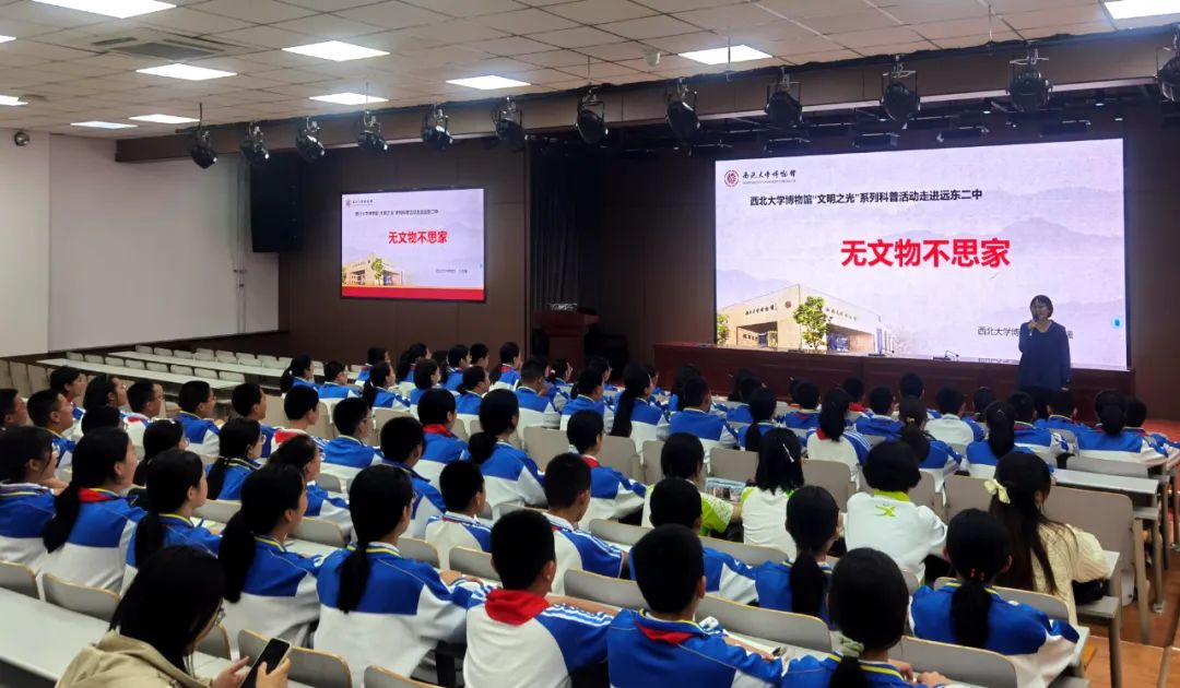 10月17号下午,西安市远东第二中学初一年级历史社团的同学们迎来了一场特殊的社团课——历史社团组织进行主题为“无文物不思家”的讲座活动。此次社团活动得到了学校和初一年级组的大力支持。