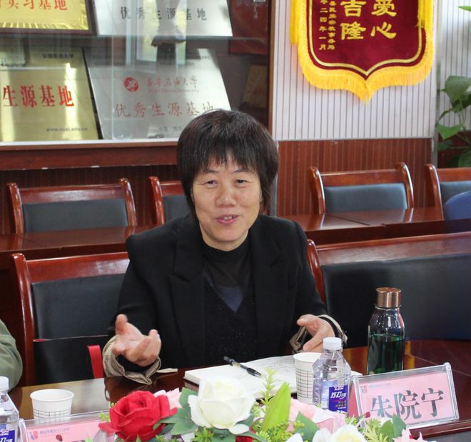 接着,朱会长发表讲话。她详细介绍了陕西福睿元教育科技有限公司在新高考教研领域的优质资源和近年来在新高考中取得的重大突破,并表示将全力以赴,为西安市第四十八中学提供全方位的教学教研支持。同时,朱会长也提出了后期合作的工作大方向,希望双方能够紧密合作,共同推动新高考教研事业的发展。