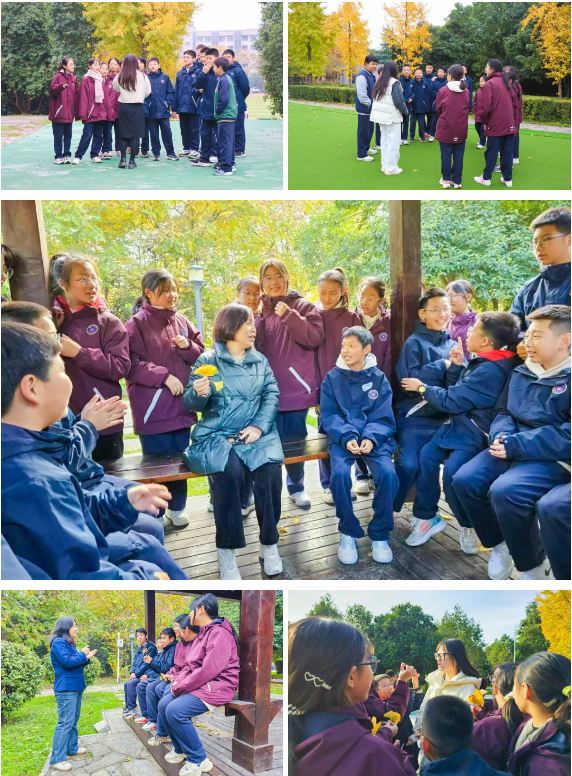 在导师日活动中,导师们精心设计了符合本班学生实际的活动内容。有的围坐一圈愉快畅谈,有的分组合作游戏,有的集体团建凝聚智慧,有的观赏景色放松身心等等,导师们在轻松愉悦的环境中给予学生思想、心理、生活、学业等各方面的关爱和支持。