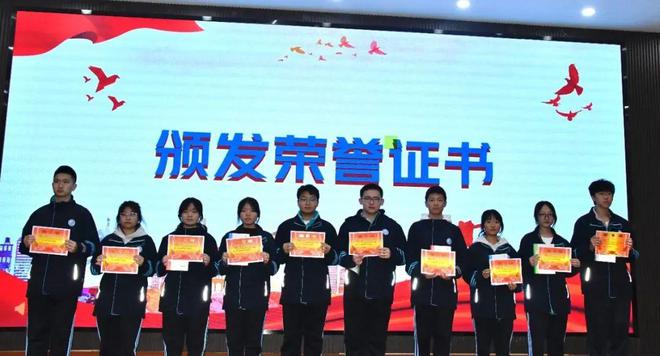 校领导为获奖同学颁发荣誉证书。