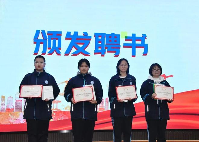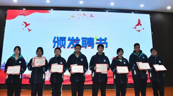 校领导为本届学生会(自管委)干部颁发聘书。