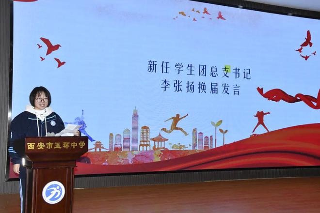 本届团总支书记李张扬同学表示,学生会是学校与学生之间的桥梁,是连接师生的重要纽带。学生会的使命是倾听同学们的心声,传达同学们的诉求,帮助解决实际问题,同时协助学校更好地开展各项工作。学生会的宗旨是全心全意为同学服务,努力营造一个和谐、积极、向上的校园环境,让每一位同学都能在五环中学这片沃土上茁壮成长。她希望全体学生会成员以拓荒牛的精神自勉,团结一心、奋力拼搏、携手奋进,共同创造西安市五环中学更加美好的明天。