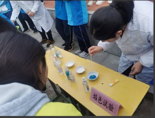 高中化学教研组组织学生开展了“铝热反应”“焰色试验”“手上生火”“套元素赢大奖”“制作浪漫许愿瓶”等活动。
