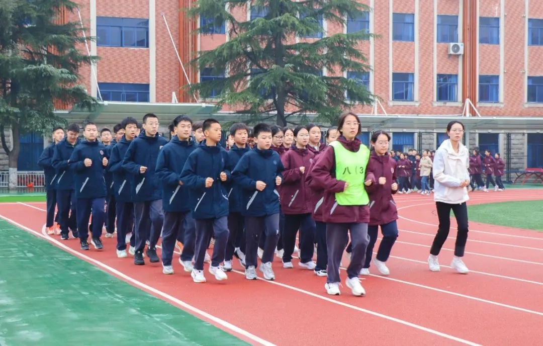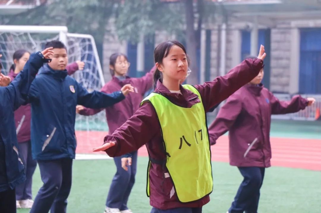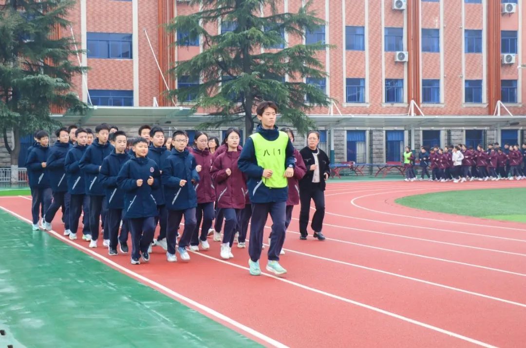 青春展风采,奔跑向未来。大课间跑操环节,不仅是对学生个人身体素质的锻炼,更是对班级凝聚力的考验。各班学生团结协作、默契配合,跟随跑操音乐节奏迈着整齐而有力的步伐在跑道上驰骋,“明道 修身 利他 共荣”的口号回荡在操场的角角落落,朝气蓬勃的班貌,昂扬向上的班风,在这一刻尽情绽放。