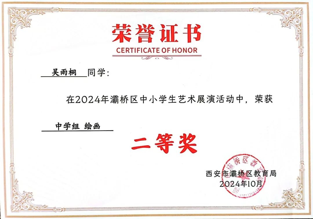 吴雨桐荣获中学组绘画二等奖