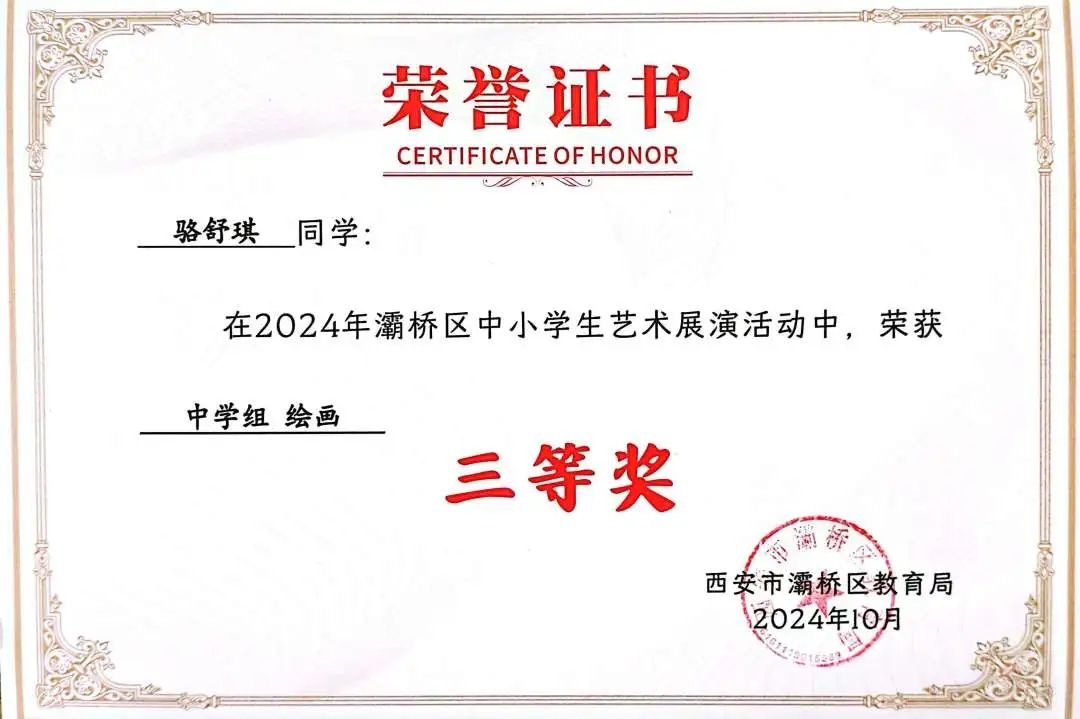 骆舒琪荣获中学组绘画三等奖