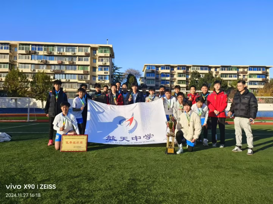 在11月27日结束的2024年西安市雁塔区中小学生足球联赛中,西安市航天中学高中男子足球队在比赛中奋勇拼搏、永不言弃,以小组第一的全胜战绩出线,并且在决赛中喜获亚军!梅康乐老师被评为优秀教练员!学校获得优秀组织奖!
