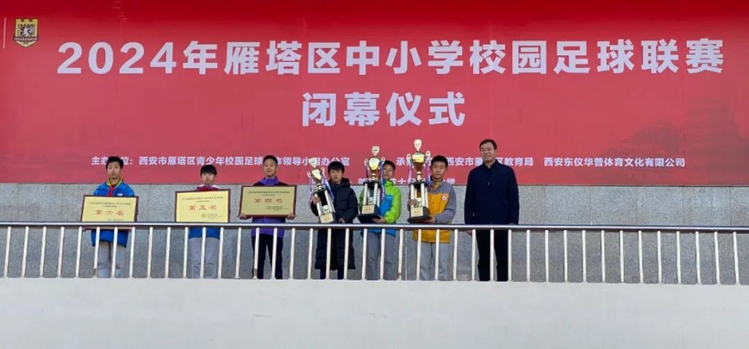 雁塔足坛风云涌,少年逐梦展豪雄。2024年雁塔区中小学生足球联赛于11月27日在陕西师范大学附属中学胜利闭幕。西安市雁塔区航天小学足球队于赛事鏖战中脱颖而出,荣膺季军之誉,陈国正老师荣膺“优秀教练员”之称。载誉而归,谨以祝贺。