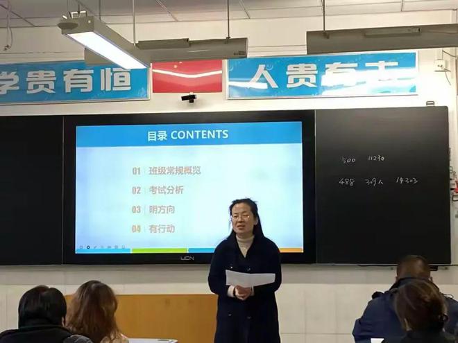 四班家校共育会,兰莉鹏老师以“班级常规概览、考试分析、明方向、有行动”为框架,全面展开。她激励家长:“鉴往知来,再接再厉,用发展的眼光看待成绩,寻求方向比责备更重要,发展比停滞更宝贵。”兰老师强调,勤反思促成长,呼吁家长与老师共同关注孩子成长过程,塑造良好习惯,修炼优良品质。她深情祝愿:“愿孩子们前程似锦,未来可期。”