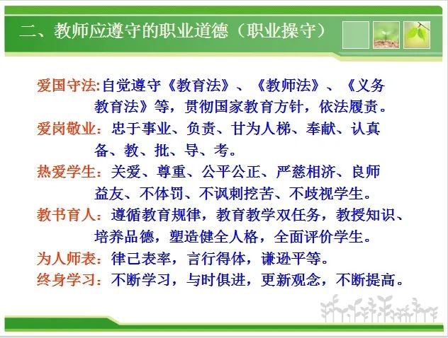 二、教师应遵守的职业道德
