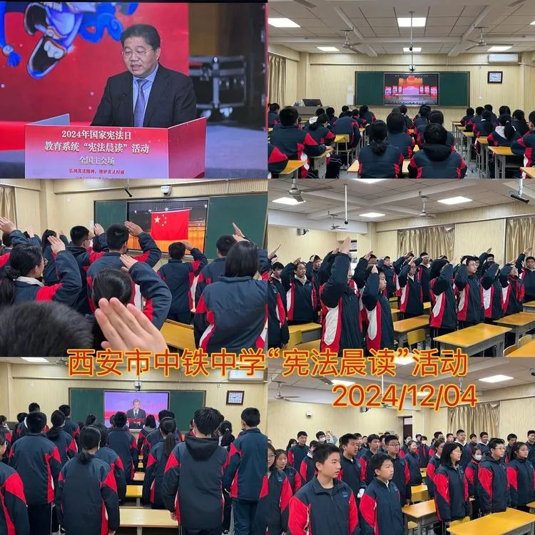 学法以明道,用法以立身。为进一步深化学习习近平法治思想,贯彻落实习近平总书记全面依法治国新理念新思想新战略,大力弘扬宪法精神和社会主义法治精神,坚定学生法治信仰,增强学生法治意识,共同建设平安校园,西安市中铁中学近日开展了2024年“国家宪法日”暨“宪法宣传周”系列活动。