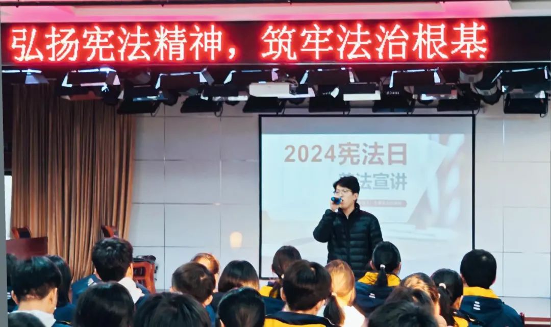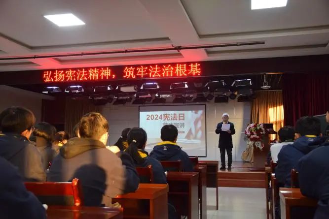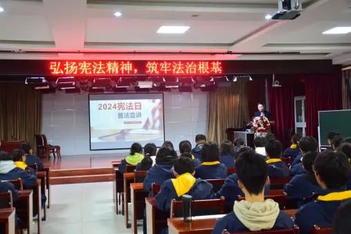 为深入落实国家宪法日及宪法宣传周的活动要求,提升师生的法律意识,弘扬法治精神,西安市第四十八中学高一年级于2024年12月6日在多功能厅举办了一场法律报告会。