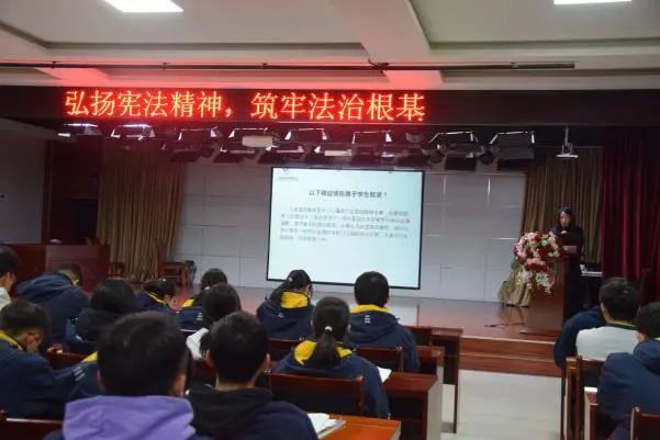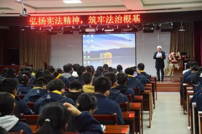 报告会开始,政教主任习晓红致欢迎辞。他细致阐述了活动的背景与目的。他说,在国家大力倡导法治的背景下,希望借由此次活动让广大师生深入学习宪法知识,提升法律素养。