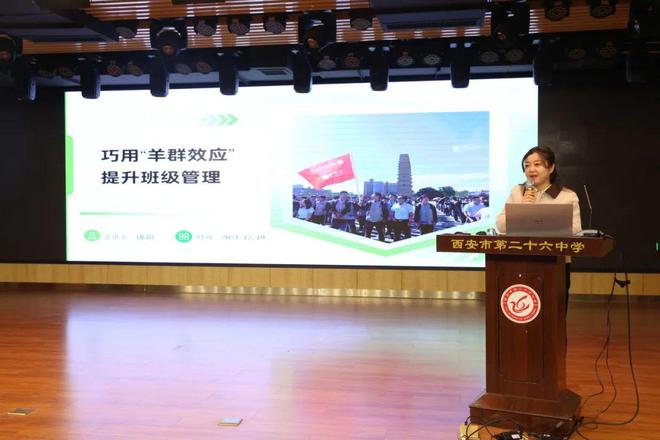 西安市第二十六中学成超老师以巧用羊群效应提升班级管理为题,进行了班主任工作室工作汇报及班主任工作分享交流。她通过分享自己的班级管理经验,介绍了如何运用羊群效应来提升学生的自我管理能力和团队协作能力,为与会人员提供了宝贵的经验和启示。