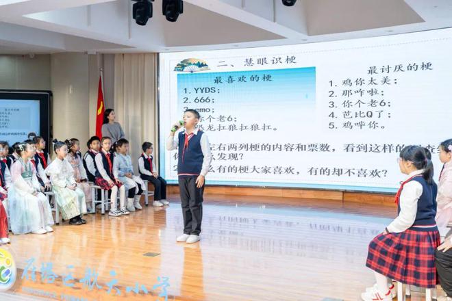 雷蕾老师则以“为低俗梗降温,品味汉字之韵”为主题,紧密结合当代少年儿童的心理特征,策划了一堂与学生生活实际紧密相关的主题教育活动,引导学生树立正确的价值观。通过这堂课,学生们不仅深刻认识到文明用语的重要性,加深了对中华传统文化的热爱之情,还为学生的心灵成长注入了一股清新的正能量。