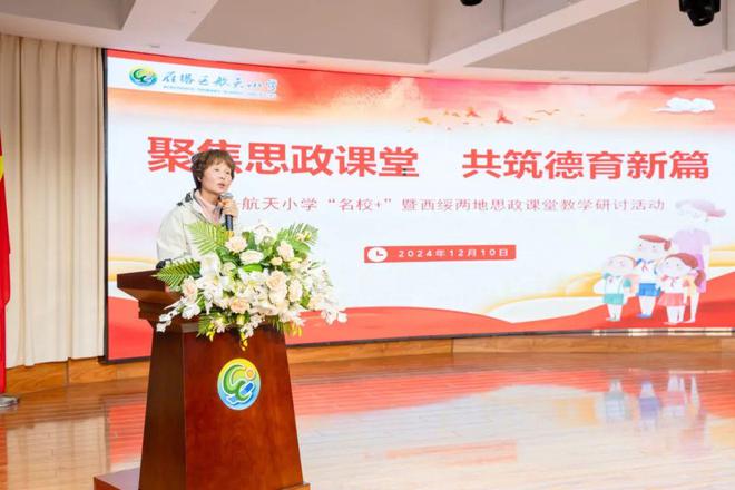 活动最后,航天小学副校长周欢对思政讲座与班会课进行了精彩点评并总结。周校长强调,本次活动为“名校+”共同体及西绥两地的老师们搭建了交流的桥梁,希望通过校际合作实现资源共享、优势互补,汇聚智慧、凝聚力量,提升德育工作的品质与内涵,为班主任队伍的专业成长注入动力,共同开启思政课堂的创新之旅。