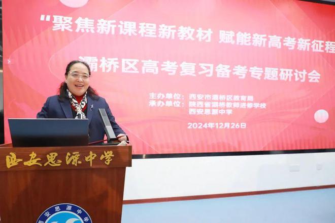 为推进普通高中新课程新教材新高考的顺利实施,切实做好2025年高考复习备考工作,帮助教师把握新高考方向,优化复习策略,提高复习效率,促进灞桥区普通高中教育教学质量的稳步提升,12月26日下午,由灞桥区教育局主办,陕西省灞桥教师进修学校、西安思源中学承办的“聚焦新课程新教材 赋能新高考新征程”高考复习备考专题研讨会隆重召开。