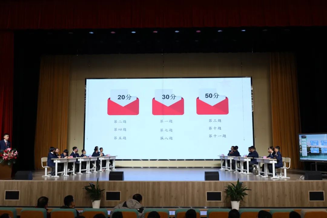竞赛现场气氛热烈,同学们积极参与、热情高涨。在必答题环节,同学们从容不迫,面对题目迅速思考并作答,流利且自信的回答赢得台下观众的阵阵掌声。