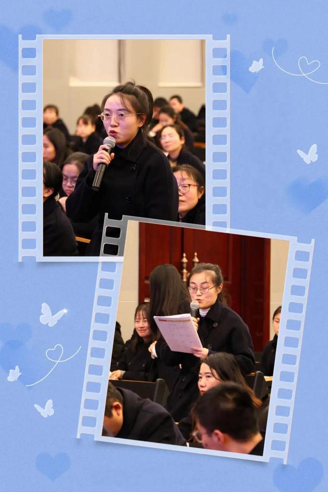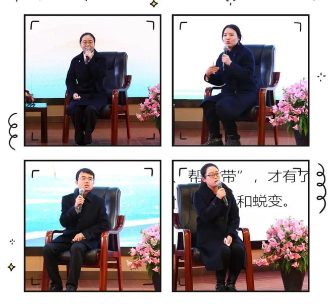 第二环节由集团四位名师对青年教师的分享予以深刻而独到的点评,并亲述自身专业发展的动人故事。马玉珺老师讲述师生情谊中的脉脉温情;李靖老师传授立足课题、善用课例,以促写作与教学协同发展之良方;孟晓婷老师深入阐释关注课堂即关注学生生命拔节之真谛;洪琳老师追思成长途中集团同仁的支持与助力,激励青年教师勇挑重担、直面挫折,持续积蓄力量,砥砺前行。