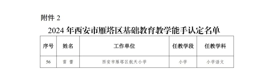 西安市雁塔区航天小学教师荣获“教学能手”称号