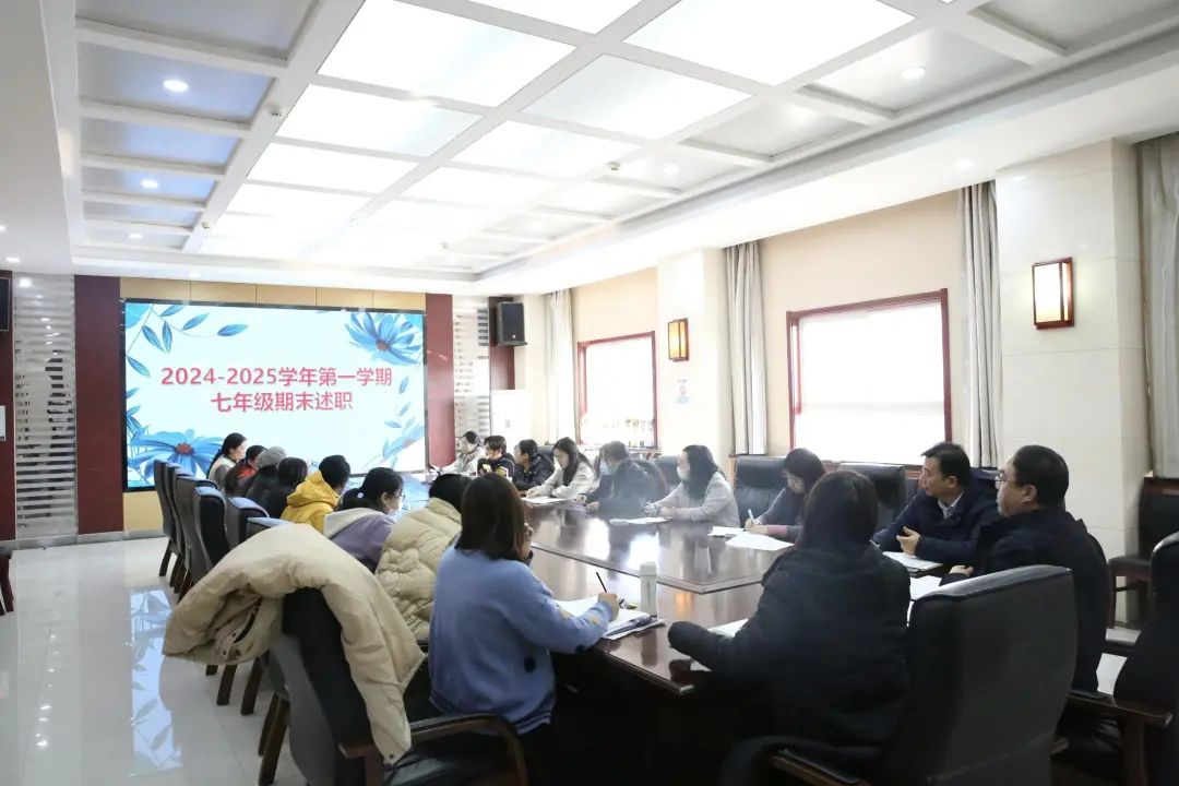 为全面总结工作、分享经验,加强年级组队伍建设,以更清晰的工作思路,推动学校高质量发展,2025年1月7日下午,西安市航天中学初一年级组在四楼会议室召开2024-2025学年第一学期述职评议会。会议由初一年级主任陈斐主持,学校校长丁宝林、副校长张引杰、付小静、张茜出席,初一年级全体教师参加。