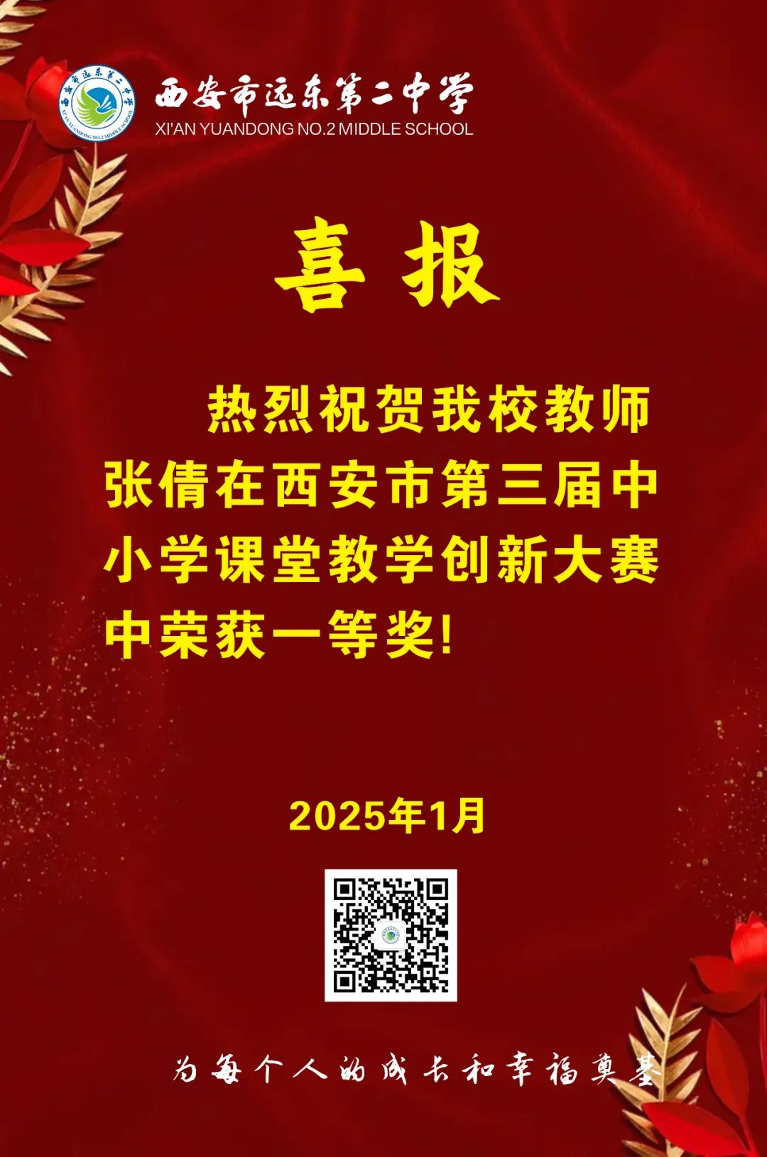 西安远东二中张倩老师荣获西安市第三届课堂教学创新大赛一等奖!