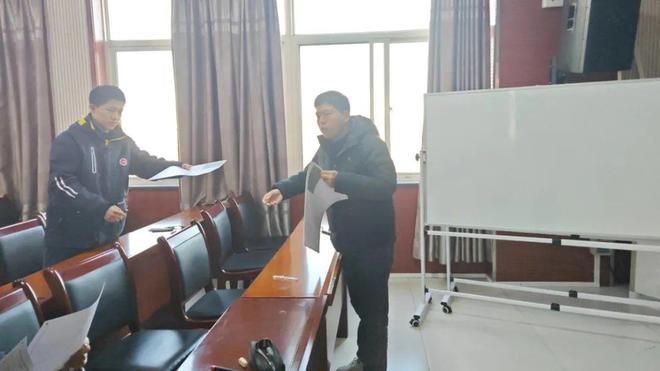 学校还特别强调了考场布置和试场检查的重要性。每个考场都按照规定的桌斗向前、拉开距离、清理干净的要求进行了布置,座位号和考场座次表也清晰可见。同时,学校还安排了专门的试场检查人员,对考场进行了全面的检查,确保了一切准备就绪。