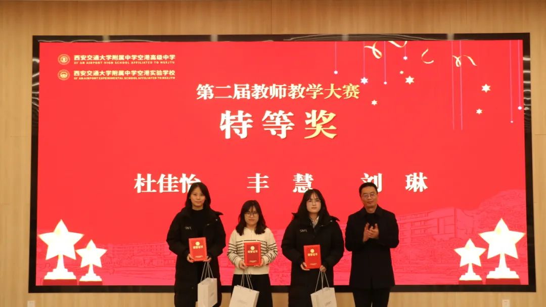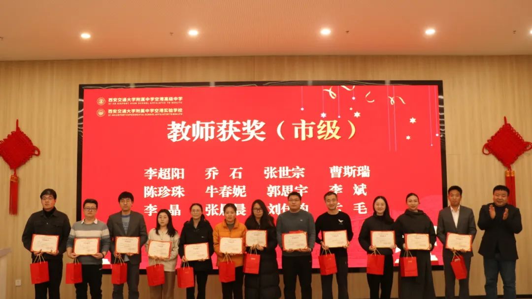 活动最后进行了教育教学表彰,对西安交大附中空港校区获得省、市、区级荣誉教师、三级三类新增教师、第二届教学大赛获奖教师进行颁奖表彰。