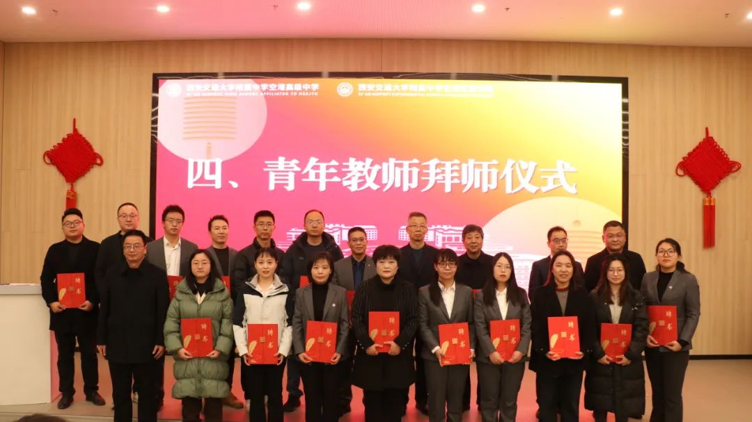学习分享结束后,西安交大附中空港校区进行了青蓝工程拜师仪式。本次拜师仪式不仅充分发挥骨干教师的示范引领作用,更是一次传承与发展的接力,是教育智慧与精神的延续。