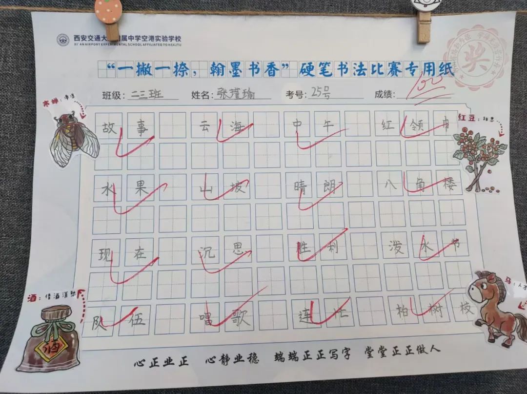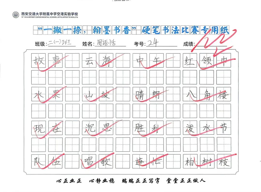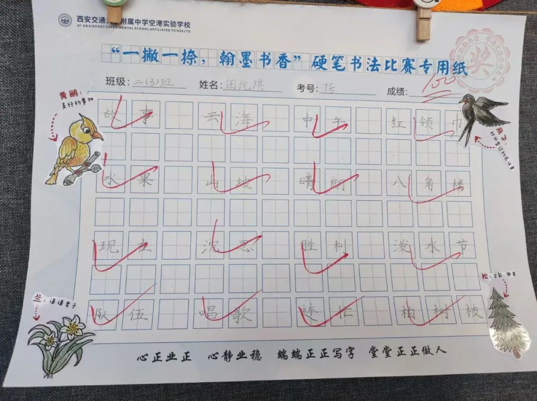 《语文课程标准》中指出:“正确掌握语言文字,是体现一个民族素质的重要标志;写好汉字,是每一个中国人应该掌握的最起码的基本功,而这一基本功的形成和发展的关键时期是在小学。” 语文组依照《语文课程标准》要求,有序开展了“一撇一捺,翰墨书香”硬笔书法大赛。