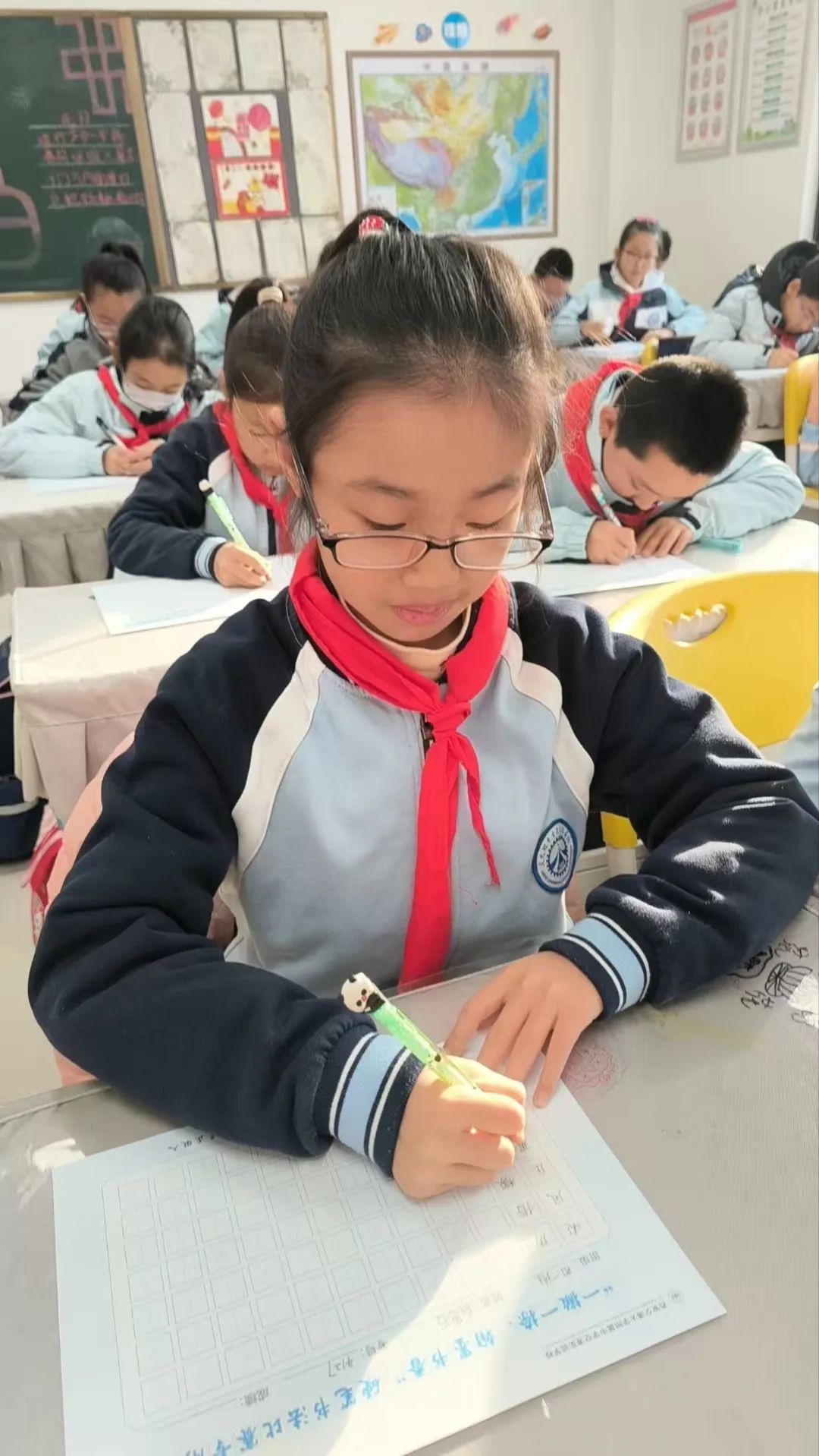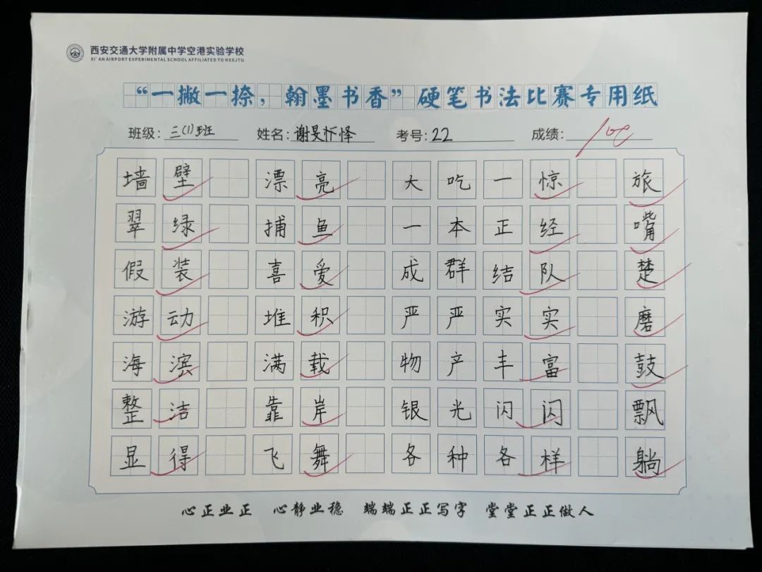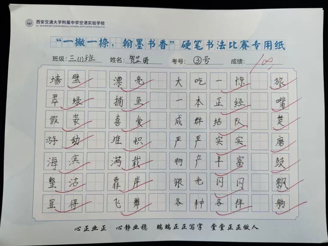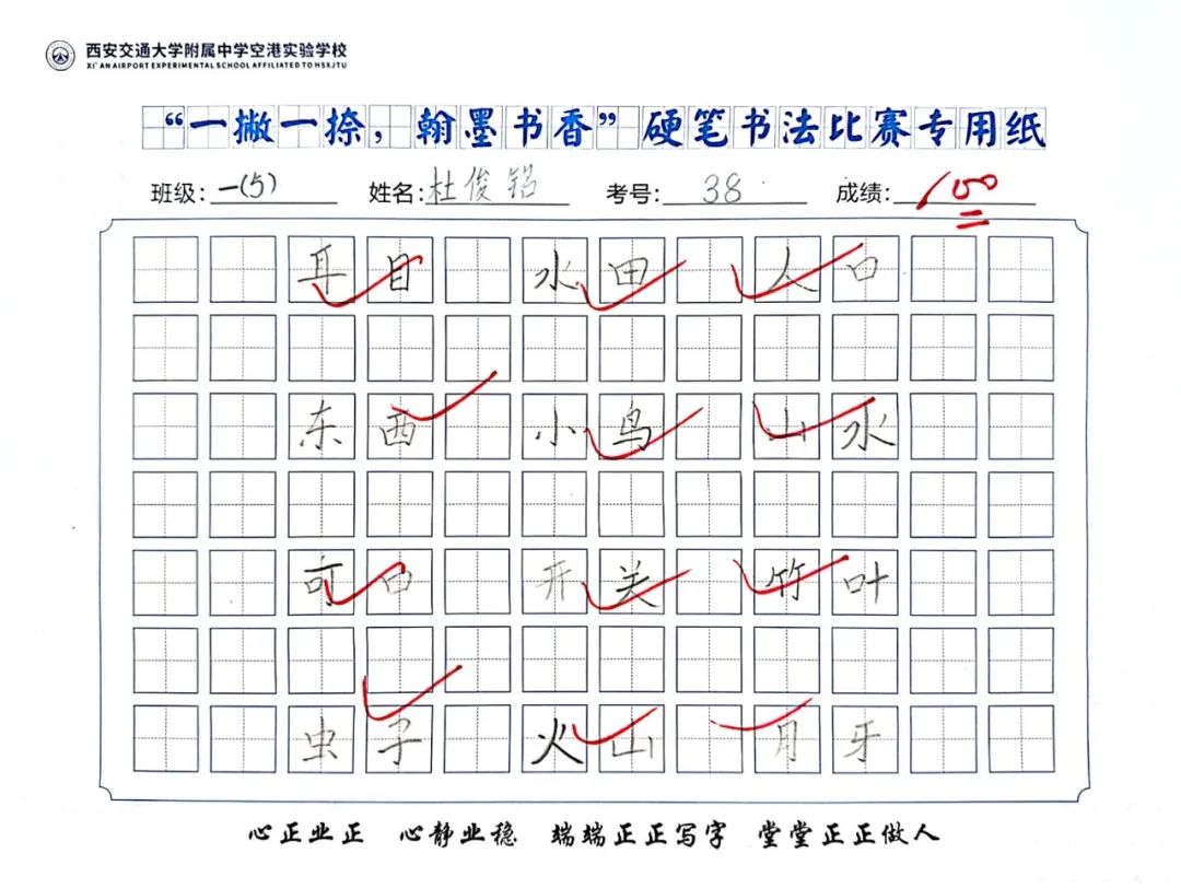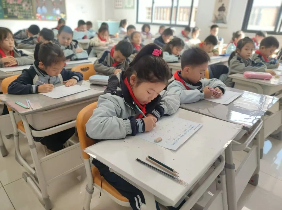 端正的坐姿展示着同学们良好的书写习惯,工整的书写凝结了同学们平日里的勤学苦练,干净的卷面表达着同学们认真的态度。