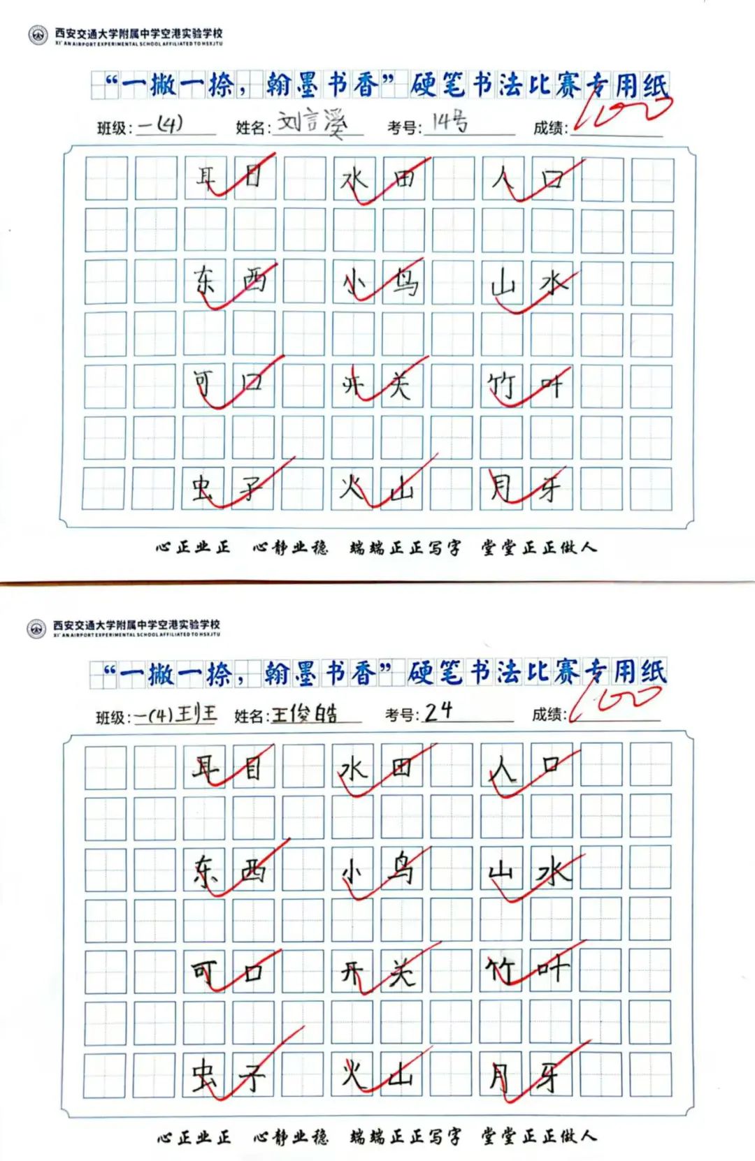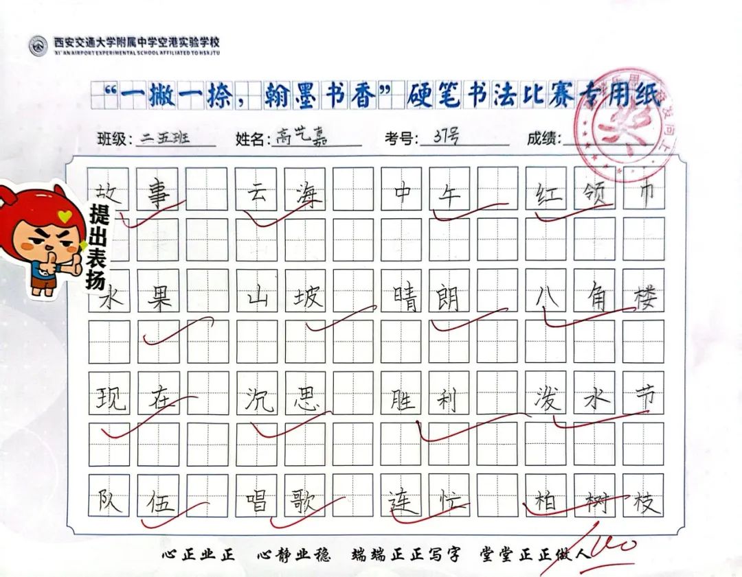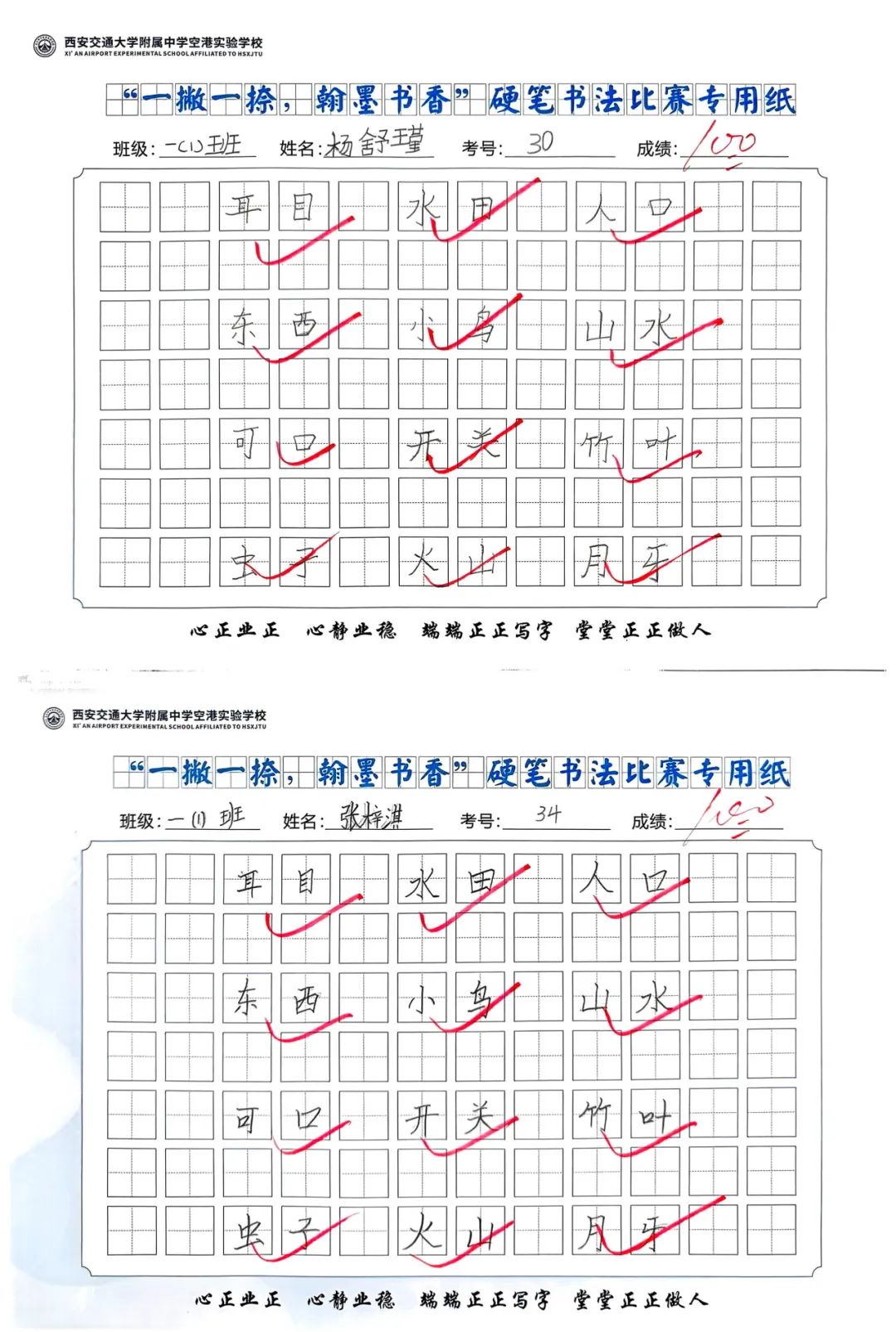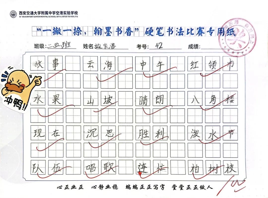 端正的坐姿展示着同学们良好的书写习惯,工整的书写凝结了同学们平日里的勤学苦练,干净的卷面表达着同学们认真的态度。